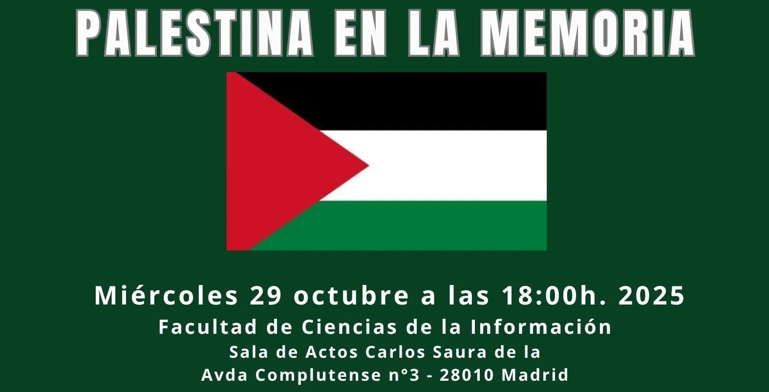 4 cortometrajes y una mesa redonda para acercarnos a la realidad de Gaza. Es un placer compartir con vosotros la acción «PALESTINA en la MEMORIA», un acto especial que une, cine, memoria y compromiso organizado por la Asociación ARTE y MEMORIA en colaboración con la Facultad de Ciencias de la Información de la Universidad Complutense de …