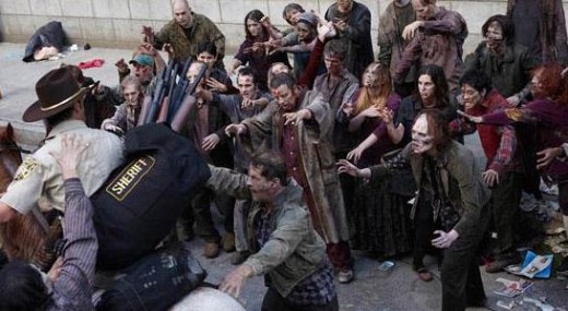 ‘The Walking Dead’ se ha convertido en una de las futuras series de T.V. que más expectación ha generado en los últimos meses, sobretodo entre los amantes de los muertos vivientes que vemos en esta producción para la pequeña pantalla un aliciente más que válido para aplacar nuestras ansias de zombies. Ahora nos llega una imagen que no hace sino confirmar las buenas sensaciones que deja la serie, y nos muestra uno de los puntos culminantes en los primeros capítulos de la nueva y esperadísima producción de AMC.