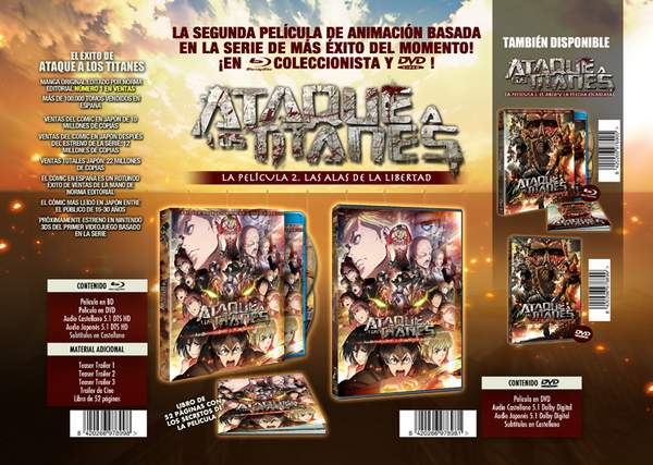 Nuestros queridos amigos de Selecta Visión presentan el Blu-ray de la extraordinaria edición coleccionista de Ataque a los Titanes, la película. Parte 2: Las alas de la libertad una película que llega para cubrir los acontecimientos acaecidos entre los episodios 14 al 26 de la famosa serie anime Ataque a los Titanes, y que además incluye algunas escenas nuevas, un redoblaje exclusivo, adaptación a sonido envolvente 5.1, la edición en DVD de la película y un libro exclusivo.