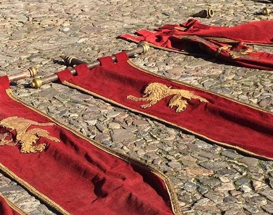 En sus calles vemos estos días los blasones de la casa Lannister y por sus bonitas calles se ven carruajes y otros elementos de atrezzo que la convertirán en algún escenario de Poniente.