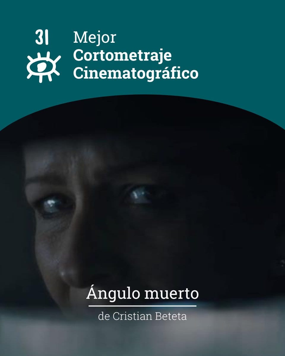 El cortometraje «Ángulo Muerto», de Cristian Beteta, ha acumulado importantes premios y reconocimientos, destacando su nominación a los Premios Goya 2026 y su victoria en los Premios Forqué 2025 a Mejor Cortometraje, además de triunfar en festivales como Cinelebu (Chile) y Claqueta Emérita, ganando premios a Mejor Cortometraje y para sus actores, Eva Llorach y Carlos Santos .